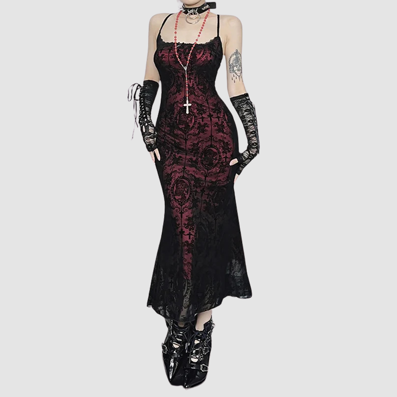 Elastyczność: Lekko rozciągliwa Styl rękawów: pasek spaghetti Typ dopasowania: Regulowany krój Dekolt: bez ramiączek Styl: gotycki Długość sukienki: do połowy łydki