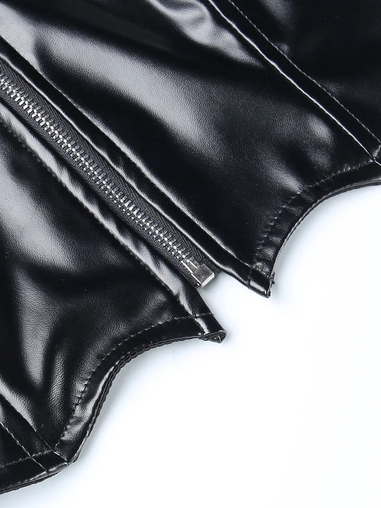 A short corset made of artificial leather, which fits perfectly into the dark but stylish character of gothic fashion. Made of high-quality materials, this corset will emphasize your figure, adding a touch of mystery to any outfit. An ideal choice for both evening meetings and club events. Order today to add a unique, Gothic charm to your look!