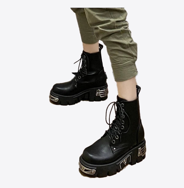 - Inspirowany gotykiem design z misternymi detalami, takimi jak ćwieki, sznurowane akcenty i ciemne kolory.