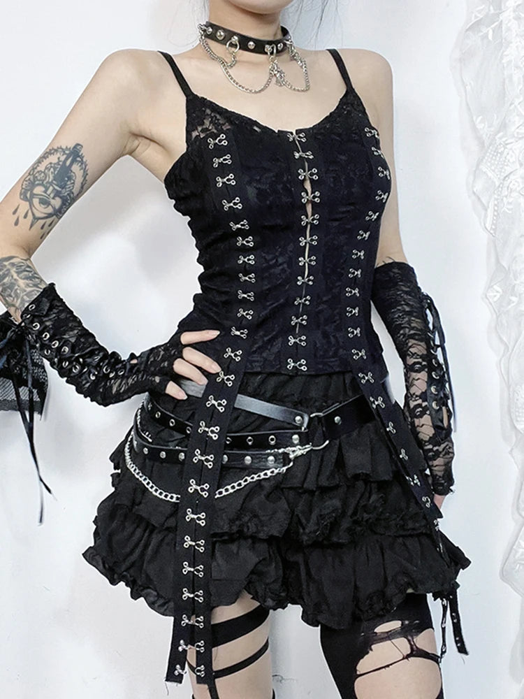 Gotycka bluzka koronkowa: Wyraź swoją unikalność za pomocą tej gotyckiej koronkowej bluzki, która łączy delikatność koronki z mrocznym stylem. Jej elegancki fason podkreśla kobiecość, dodając stylizacji tajemniczego uroku. Sprawdź również nasze inne gotyckie bluzki.