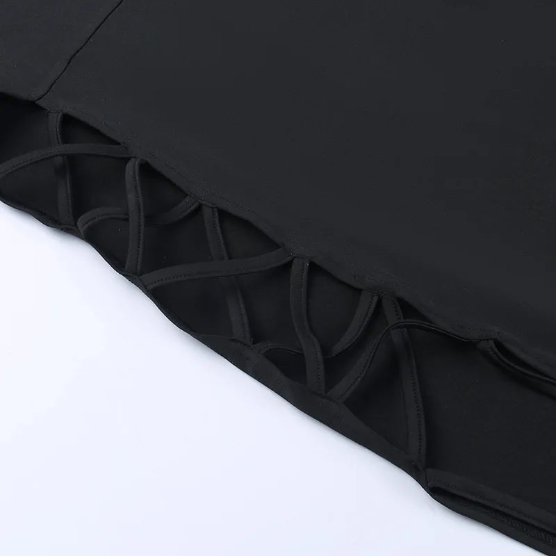 Czarna sukienka gotycka z mrocznym wycięciem: Dodaj do swojej garderoby tę unikalną czarną sukienkę z mrocznym wycięciem, która harmonijnie łączy elegancję z odważnym stylem. Idealna na wieczorne wyjścia i specjalne okazje, ta sukienka przyciąga wzrok i podkreśla Twoją wyjątkową osobowość. Sprawdź również nasze spódnice gotyckie.