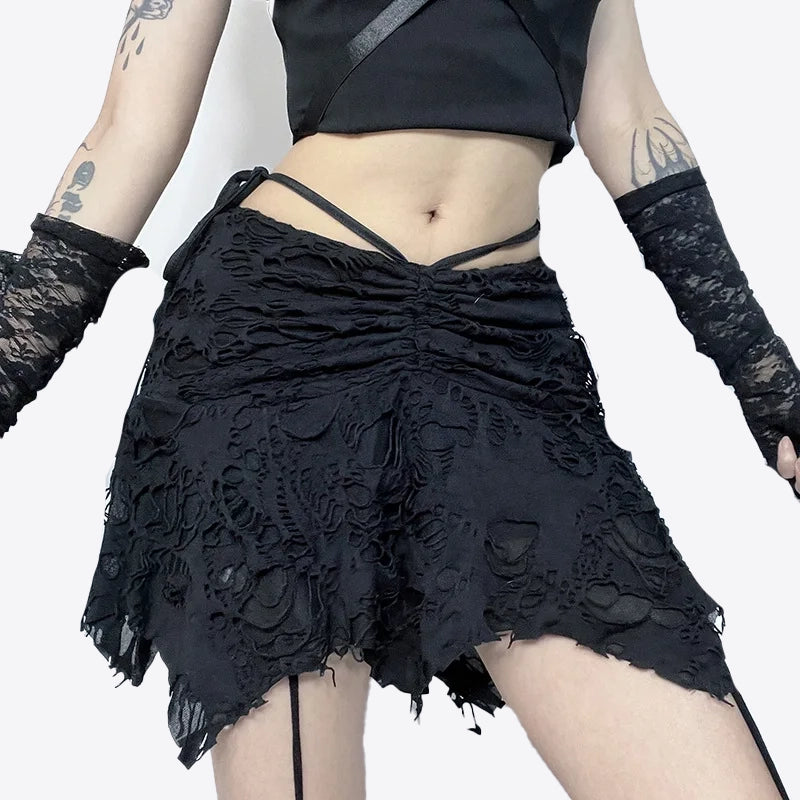 Szarpana spódnica gotycka: Dodaj nieco mrocznego uroku do swojej garderoby dzięki tej szarpanej gotyckiej spódnicy. Jej nietypowy design i wyrazisty charakter sprawią, że będziesz wyglądać wyjątkowo i oryginalnie. Sprawdź również inne gotyckie spódnice dostępne w naszej kolekcji.